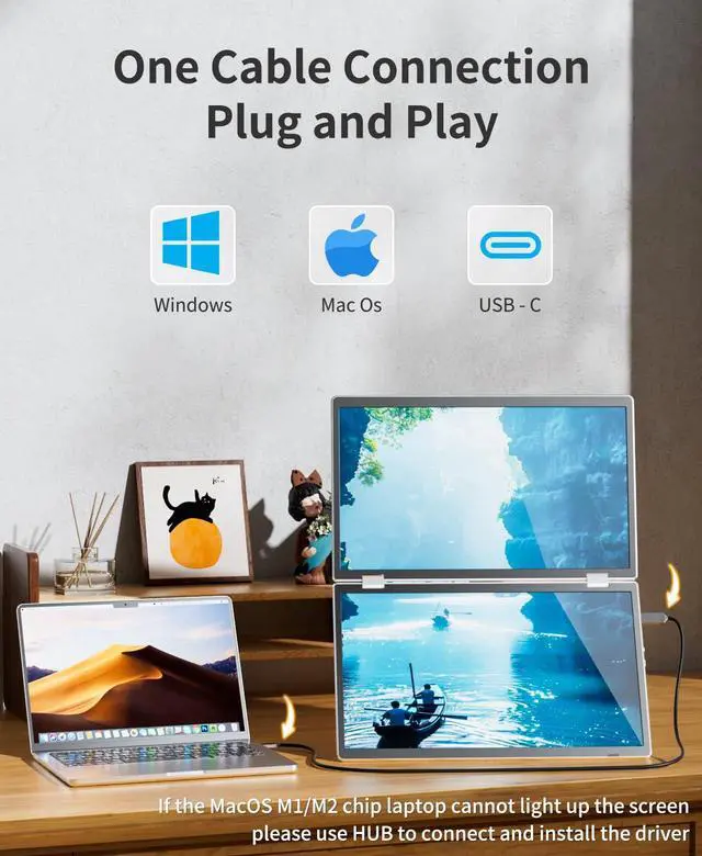 [Simple Plug-and-Play]: The Laptomo screen extender is designed to simplify multiple-screen setups with just one cable, which is capable of connecting all three screens seamlessly.