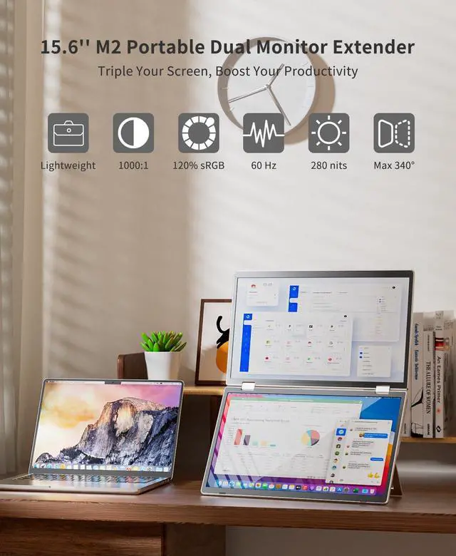 [Ultra-Light and Slim Design]: Weighing only 3.57 lbs, the Laptomo dual monitor is a compact unit, ideal for travel and remote work.