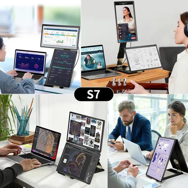 S7 16 Inch Mobile Monitor Dual Display, Updated 1200P FHD Portable Display, 16:10 Aspect Ratio Screen, Rotatable and Detachable Screen, Lightweight for Laptops with Travel Bag, USB-C/HDMI Ports