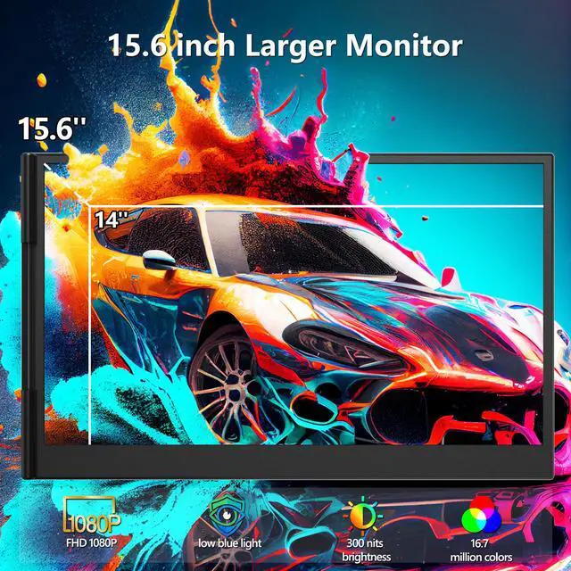 [15.6" High-Quality Screen]: This laptop screen extender is equipped with a 15.6-inch 1080P Full HD IPS panel, featuring 1920×1080 resolution, 280 nits brightness, 1000:1 high contrast ratio, and 72% NTSC wide color gamut to present stunning visuals, outstanding color accuracy, and wide viewing angles. The high-definition display delivers crisp, delicate images ideal for office work, design, media editing, and other professional scenarios.