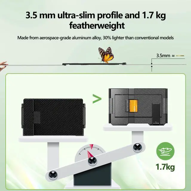 [Ultra-Slim & Lightweight]: This portable monitor features an ultra-slim profile of only 3.5mm and a lightweight build at 1.7kg, making it highly portable and easy to carry in a laptop bag. Perfect for daily commutes, business travel, and mobile work, it allows you to create an efficient multi-screen workspace anytime and anywhere.