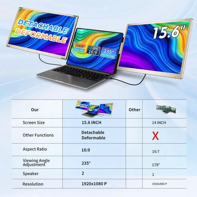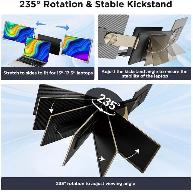 [Triple-Screen Boosts Productivity Up to 300%]: Expand your workspace to three screens simultaneously for coding, spreadsheets, and data analysis, greatly improving multitasking efficiency. Ideal for home offices, business travel, and on-the-go meetings.