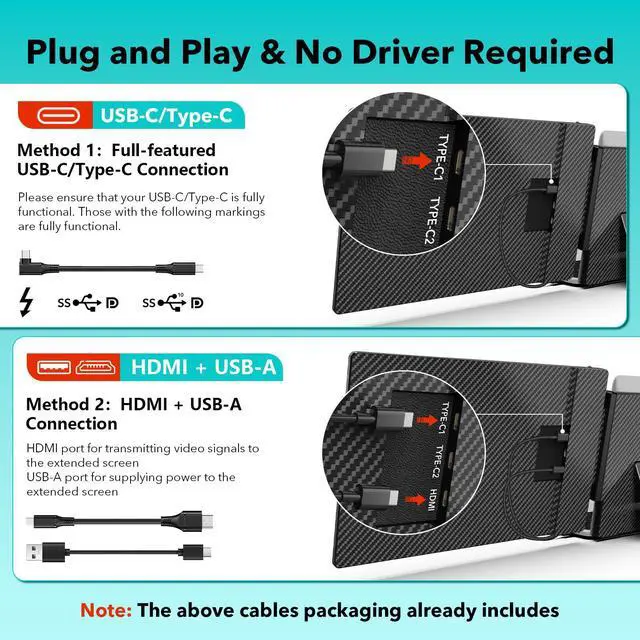 [Wide Compatibility & Plug & Play]: Plug and play functionality with no driver required. Each screen supports 0 to 180 degree free rotation and is compatible with Mac, Windows, Android, PS5, and most other systems.