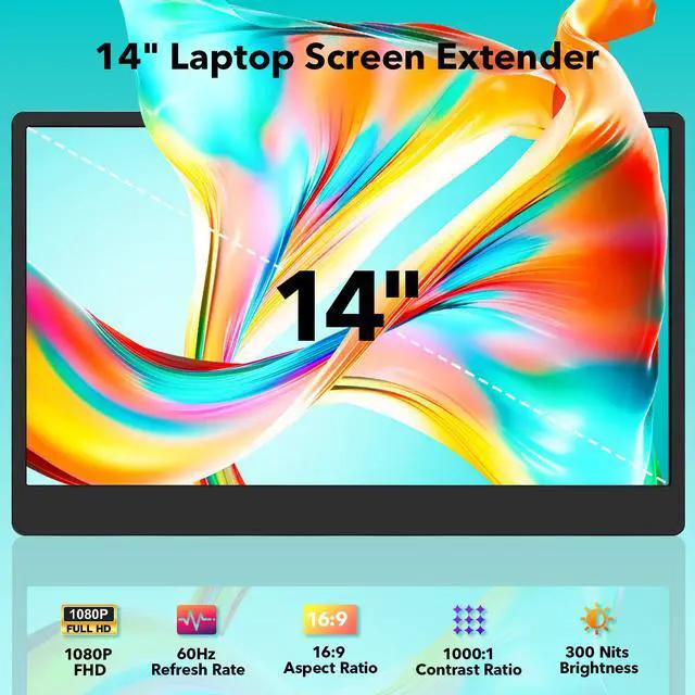 [14-inch FHD 1080P IPS Display]: This 14 inch dual screen portable monitor delivers sharp 1920×1080 FHD visuals with 300 nits brightness. Each screen allows independent adjustment of brightness, contrast, and backlight for a personalized viewing experience.