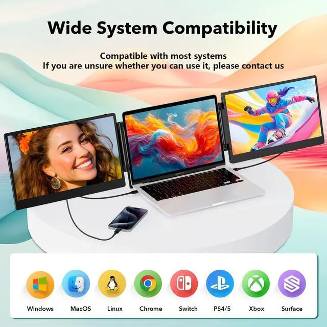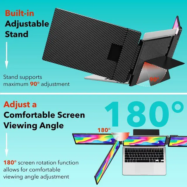 [Wide Compatibility & Plug & Play]: Plug and play functionality with no driver required. Each screen supports 0 to 180 degree free rotation and is compatible with Mac, Windows, Android, PS5, and most other systems.