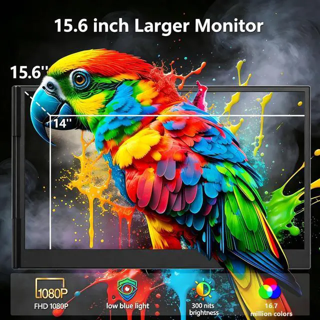 [Vivid & Accurate]: 15.6" 1080P FHD IPS display, 280 nits, 1000:1 contrast, 72% NTSC. Crisp, lifelike images perfect for office, design, and media work.
