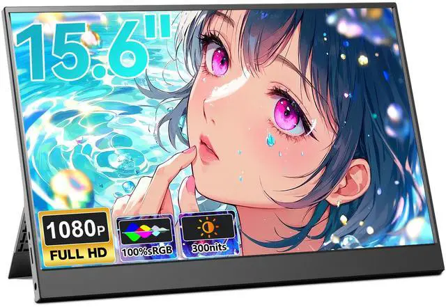 15.6" Slim Portable Monitor, 1080P FHD IPS with 85% sRGB, USB C & HDMI Plug and Play, Built in Stand and Speakers, External Display for Laptop, Mac, Switch, Xbox
