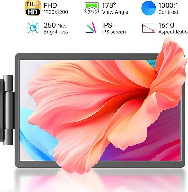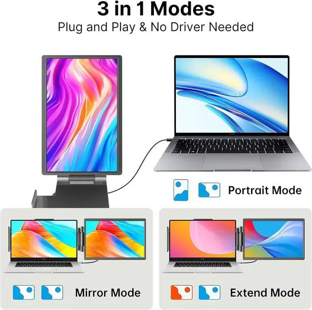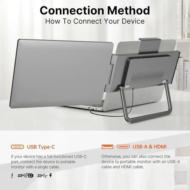 14" Laptop Screen Extender,16:10 FHD 1200P IPS Dual Screen,Attachment Screen Extended Extra Screen, Portable Monitor for Laptops 14-16" with USB-C/HDMI Port, Plug n Play for Windows/Mac/Android/Switch/PS5
