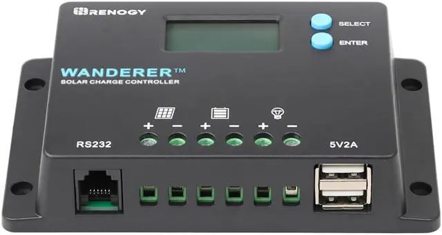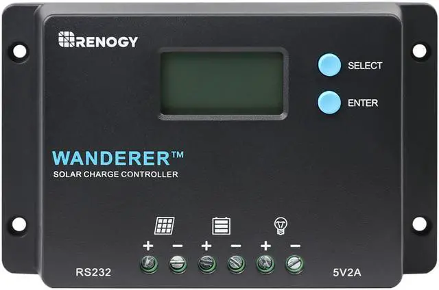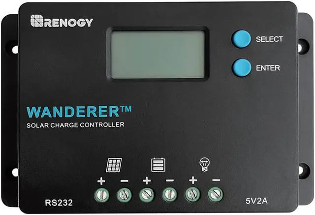 The Renogy Wanderer 10A solar charge controller integrates efficient PWM charging to increase battery life and improve system performance. Designed with a simple interface for ease of use the controller uses an LCD to notify users of battery information. This advanced charge controller is designed for off-grid solar applications and can be used with a 12V/24V battery or battery bank. The compact size of the controller makes installation a breeze. The controller comes equipped with fully comprehensive self-diagnostics and electronic protection functions to prevent damage from installation mistakes or system faults. Wanderer 10A PWM Charge