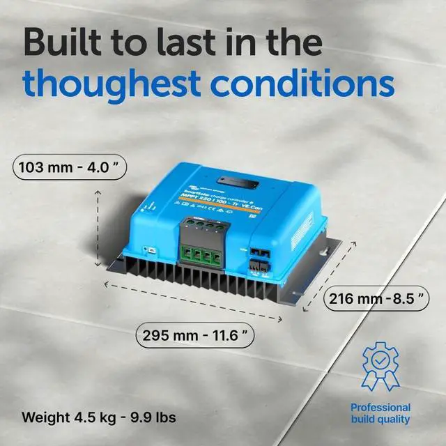 SPEED & EFFICIENCY: With lightning-fast optimum power point tracking and intelligent charge algorithms the Victron MPPT solar charge controller makes sure you always get the maximum possible power output, even when your solar panels are partially covered in shade.