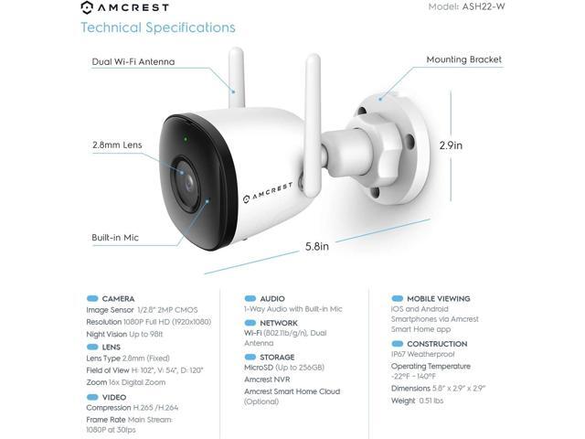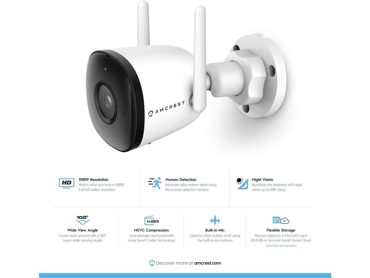 Amcrest 1080P WiFi Camera Outdoor, Smart Home 2MP Bullet IP Security Camera Outdoor Wireless, 98ft Nightvision, 256GB MicroSD Storage (Sold Separately), ASH22-W (Wired Power) (Refurbished)