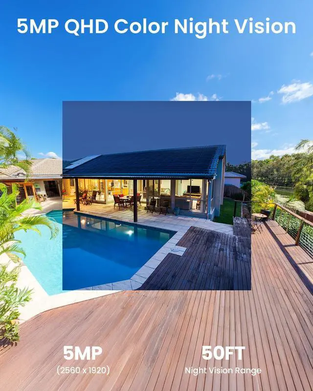 , The S1 Pro features a upgraded 3K 5Mega color CMOS sensor, capturing passing moments in ultra-sharp resolution without missing key details. As night falls, this home security camera with keen sharp eyes can still see in total darkness and capture crystal clear image. Bright spotlights on camera will reveal details in color, and evidence has nowhere to hide.