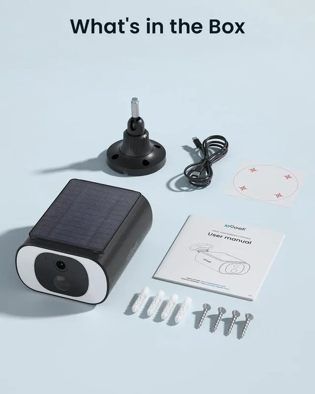 , Introducing the new all-in-one ieGeek Solar Cam S1 Pro that eliminates the need for a power cable and separate solar cable, drill one hole, once. This seamless design offers flexible installation for effortless setup, Tiny but mighty.