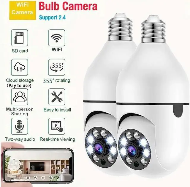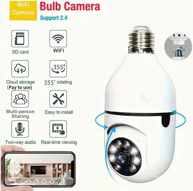 TWO-WAY TALK AND HIGH-QUALITY SERVICE: Light bulb security camera built-in and speaker, the light bulb security camera can have a conversation between you and your visitor. If you have any questions, please contact us. We provide lifetime technical support and services. Bulb camera supports SD card storage and cloud storage, (camera does not come with SD card, cloud storage needs to be paid).