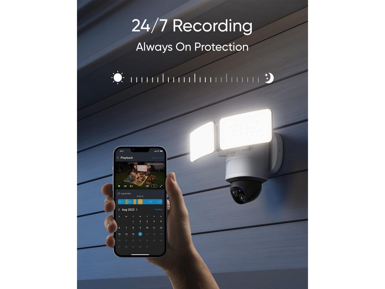 - 24/7 Recording for Peace of Mind: Always on and always recording when local storage has been enabled by installing a microSD card (up to 128 GB) or connecting to eufy HomeBase S380. Activities and people can be monitored at all times.
