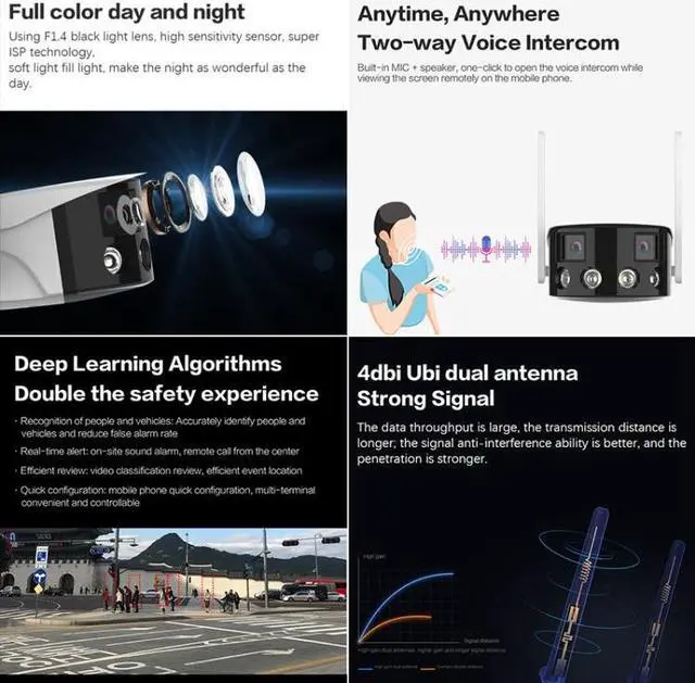 5. Multiple modes such as dual light alert, full color day and night, infrared night vision can be switched smoothly