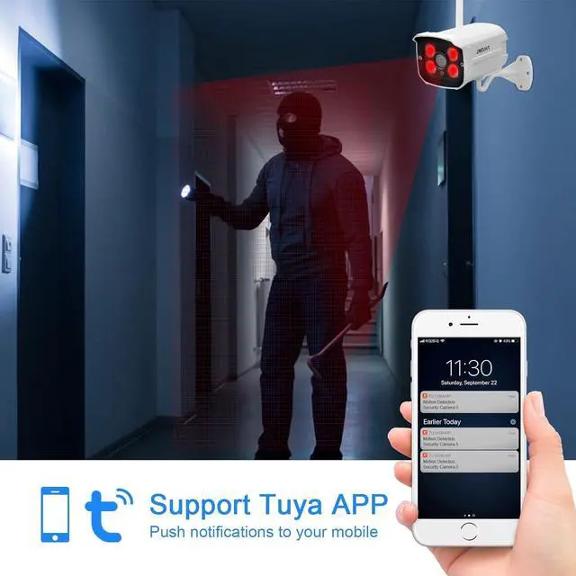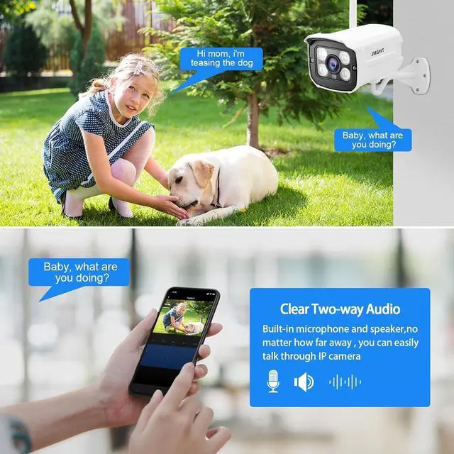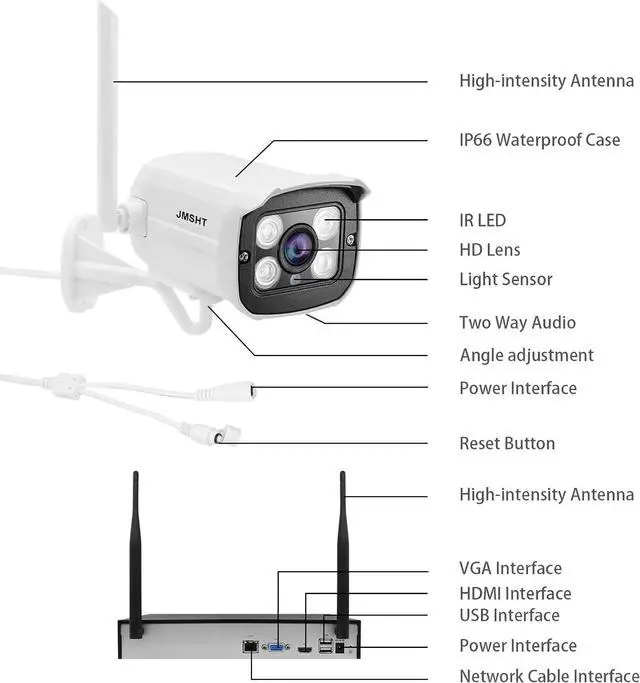 1080P&Waterproof & Night Vision1080P HD, Full metal case. IP66 weatherproof housing provides protection from elements, including sand, as well as harsh weather conditions or anything between(-30°C~+60°C ); Featuring infrared light and IR filter auto switch of the IP66 bullet cameras allows to clearly see up to 65ft in ambient night environments. The camera's smart array IR-Cut filter switches automatically to night vision when the light is lower and record in black & white image as the night falls.