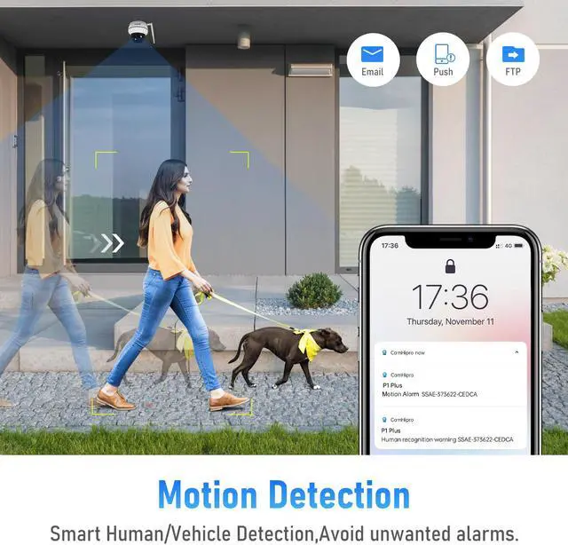 360°viewing angle & Smart Detection TrackingRotate 355° horizontally and 90°vertically to cover every corner, delivering a seamless live view. with improved smart motion detection Auto-tracking function less false alarm, send real-time snapshots to mailbox or FTP Server.