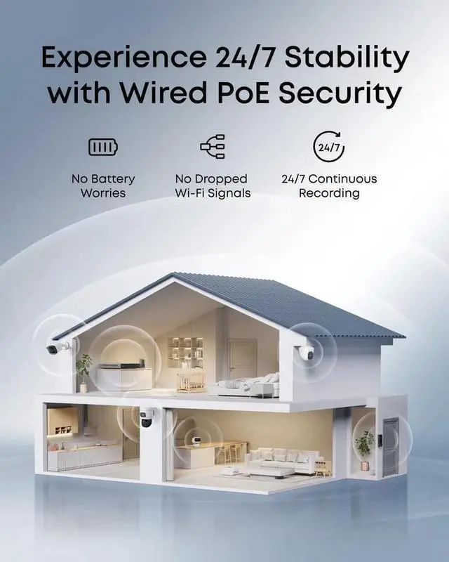With built-in 2TB storage, all video footage is securely recorded and easily accessible, giving you peace of mind knowing your property is monitored around the clock. The PoE (Power over Ethernet) setup simplifies installation, reducing cable clutter while ensuring stable, uninterrupted connections for your cameras.