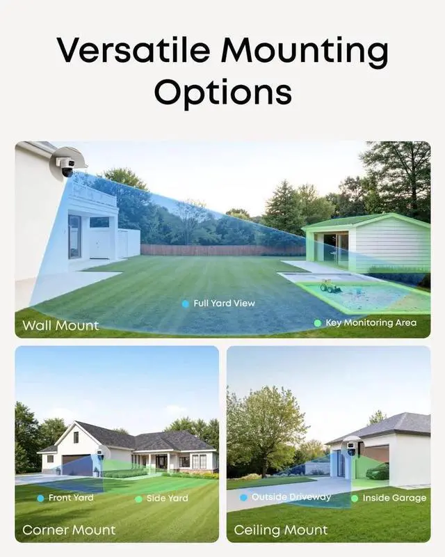 Flexible camera setup for full property coverage