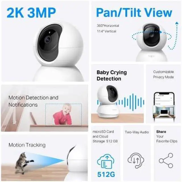 Secure Local or Cloud StorageSave footage continuously on up to a 512 GB microSD card (not included) or subscribe to Tapo Care for cloud storage which saves 30-day video history and provides additional benefits such as motion tracking, baby crying detection, and more. [Before purchasing a microSD card, please check the TP-Link website FAQ to ensure compatibility with your device.]