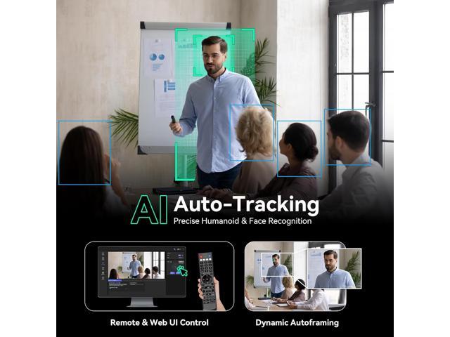 - & -Tenveo AI PTZ Camera features human body and face auto-tracking based on advanced AI algorithm. The Live Streaming camera can automatically determines the subject's location and maintains perfect, stable centering throughout any movement. A key point is its ability to lock onto and track a target even if momentarily blocked, providing a seamless experience. You can easily switch between Presenter Mode and Auto-Framing Mode to suit your needs.