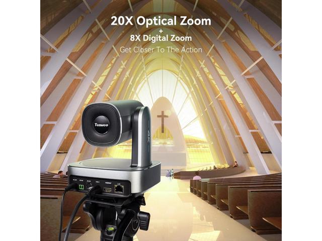 - Equipped with a 1/2.8" CMOS Sensor (8.29MP) and advanced imaging algorithms, it delivers crystal-clear 4K 30fps video. Featuring a powerful 20X Optical Zoom, 8X Digital Zoom and a 63° Wide Angle Lens, the PTZ 4K Camera effortlessly captures both distant details and broad panoramic scenes. Combined with 2D & 3D Digital Noise Reduction technology, this Tenveo PTZ Camera ensures clear, low-noise images under various lighting conditions.