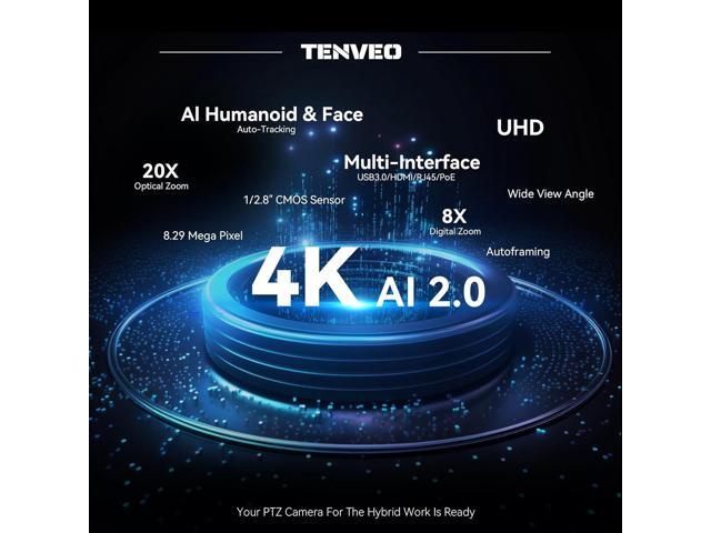 Tenveo 4K PTZ Camera AI Humanoid & Face Auto-Tracking 20X Optical+8X Digital Zoom USB3.0/HDMI/LAN PoE IP Live Streaming Camera for Church Worship Broadcast Events Video Conference YouTube OBS