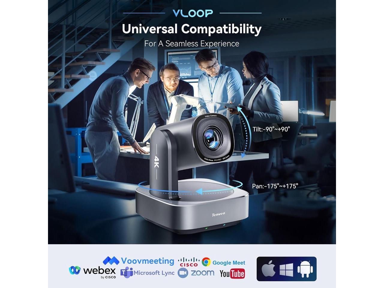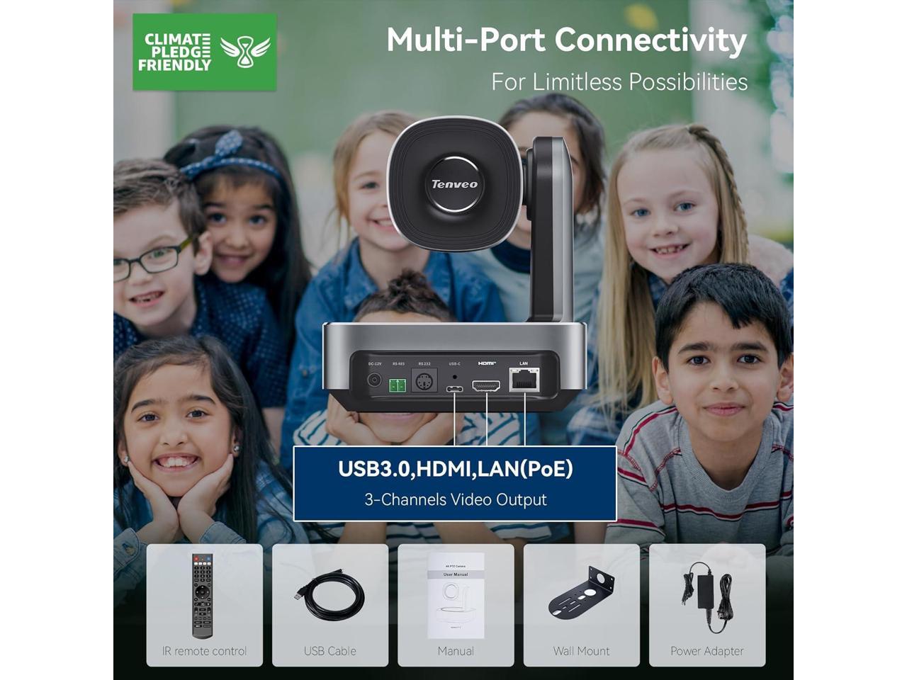 - & The 4K PTZ Live Streaming Camera offers exceptional flexibility with HDMI, USB 3.0, and RJ45 outputs. Supports PoE, allowing a single Ethernet cable to handle both power and data. It simultaneously outputs up to 4K@30fps video from HDMI and USB3.0, and up to 1080p from IP streams. Perfectly compatibility with professional Video Mixer Switchers and the Tenveo PTZ Controller. : No buit-in micphone.