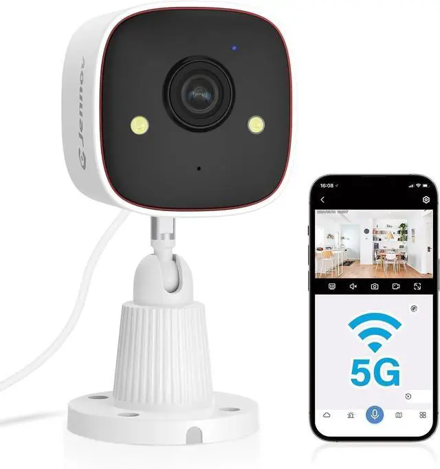 IP66 WATERPROOF & WIDELY USED INDOOR/OUTDOORFeaturing a durable IP66 waterproof design, this camera reliably operates in any weather, rain or shine. Easily install it indoors or outdoors by placing it on a shelf or mounting it to a wall, ensuring comprehensive coverage of your property. (Seamlessly connects to your home network via 2.4GHz or 5GHz dual-band WiFi).