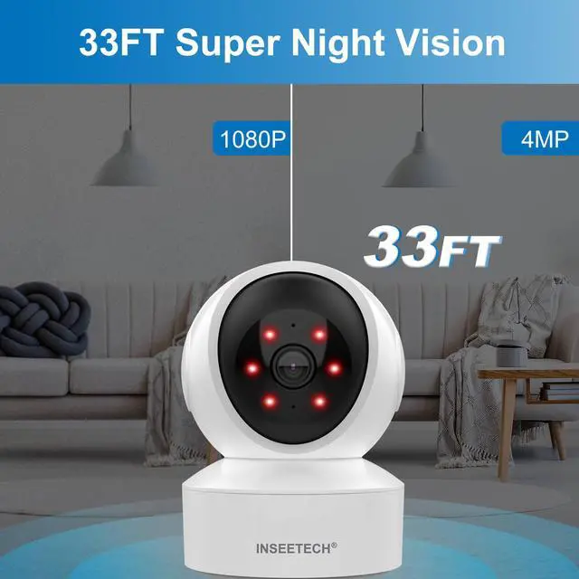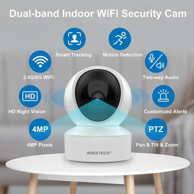 INSEETECH 4MP Indoor Wireless Security Camera, 2.4/5Ghz Pet WiFi Camera with PTZ Auto Tracking, 5g Baby Cam for Dog Cat Home/House Security, Motion Detection, Phone APP Control, 24/7, 2-Way Talk