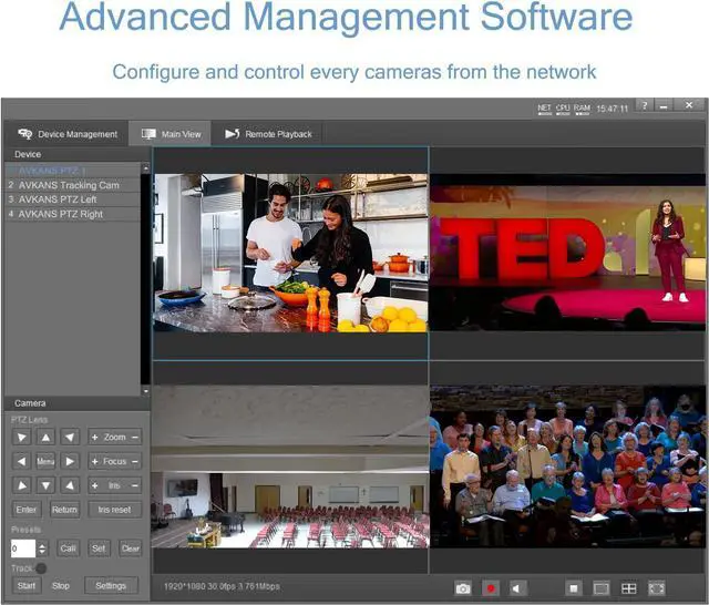 AVKANS 20X NDI PTZ Camera. Built-in SONY CMOS Image Sensor, video quality is up to 1080P 60fps, real color and charp video quality. 5 video outputs in 1 camera: USB, HDMI, SDI, IP, NDI. POE Support.