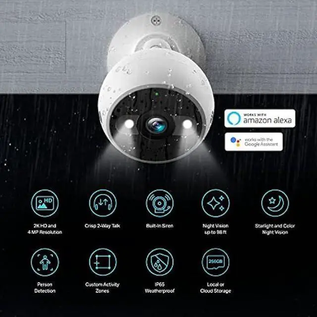 HD: Deploy your outdoor security camera with a true to its name weatherproof IP65. Pristine 4MP 2K video will capture every detail of what goes on outside your home, see every object someone is holding, recognize every face that passes by, no important details will be missed.