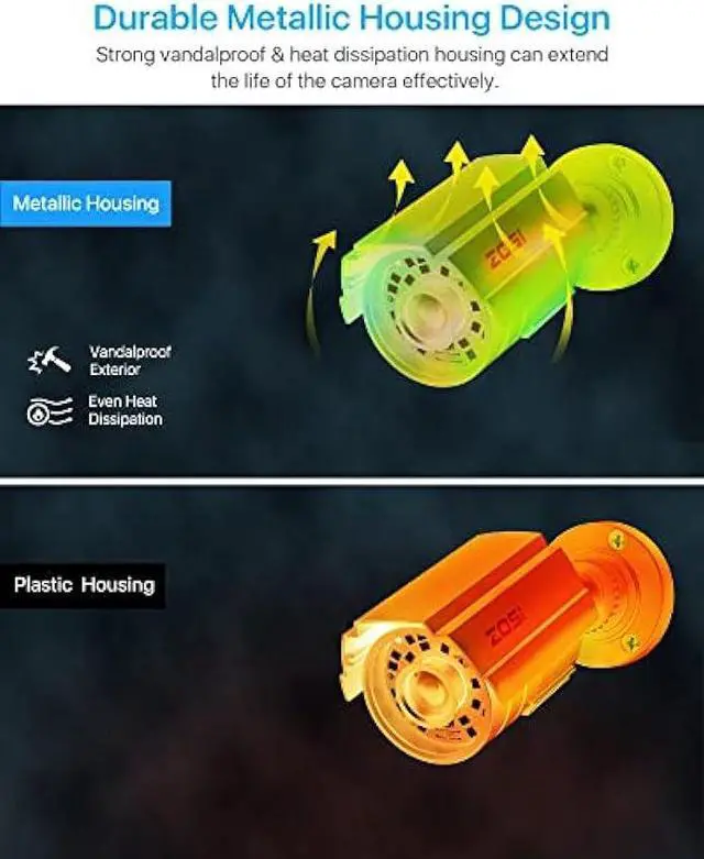 IP67 Weatherproof, Indoor and Outdoor useAluminum metal vandal proof & waterproof can withstand the toughest of outdoor conditions, adjustable 3-axis camera stand, cable through bracket for hassle free use in rainy or snowy days.