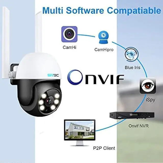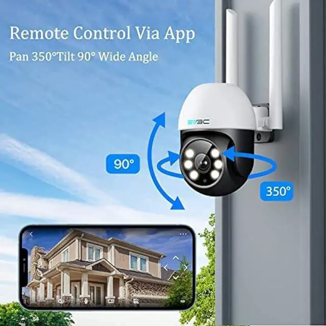 Two-way Audio & Remote View: The ptz outdoor camera is built-in with a microphone and speaker. You can talk with your family or visitors through your mobile phone. In addition, you can warn and drive away suspicious people who come to your home. The outdoor camera has clear two-way audio, low noise, no delay, and protects your family safety all year round. Download CamHi or CamHipro app or download HiP2P client software from SV3C website, you can connect and view cameras anytime, anywhere.