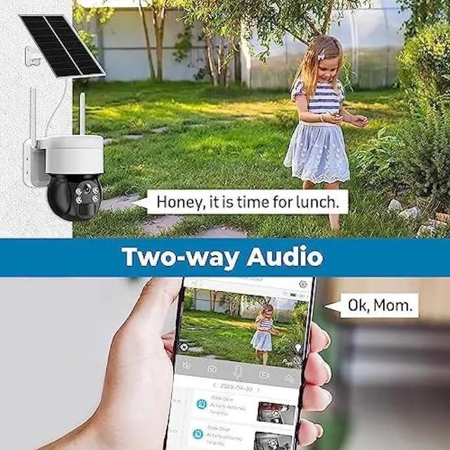 Remote Access and High-Quality Live Video: Users can remotely access the camera via their smartphones using a 4G network, allowing them to monitor their property anytime and anywhere. The PTZ camera features a 355° pan, 90° tilt, and 4x digital zoom for a comprehensive view. With a built-in spotlight and advanced image sensor, the night vision camera captures 2K colorful photos and videos day and night