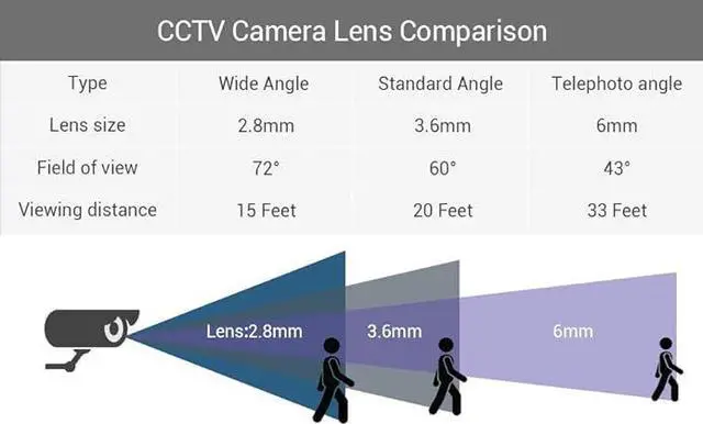 See 72-degrees horizontally and clearly distinguish people at a distance of 15 feet with this TIGERSECU Super HD 1080P hybrid 4-in-1 dome security camera that has a built-in 2.8 mm wide-angle lens. Perfect for wide angle viewing of large rooms, hallways, reception areas, warehouses, showrooms, garages, parking lots, and more.