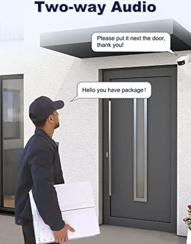 Two-Way Talk The wide angle security camera comes with a built-in speaker and microphone, enabling you to communicate with visitors or potential intruders. You can warn them to leave your property or answer the doorbell remotely from anywhere.
