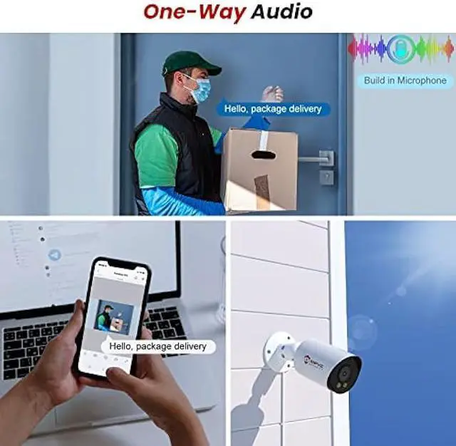Support 256G SD Card and Audio RecordingThis Anpviz 8MP IP camera has a built-in micro SD card slot, which supports up to 256G, it also supports NVR storage and NAS storage. In addition, this bullet camera has a built-in audio, which can record sound clearly.