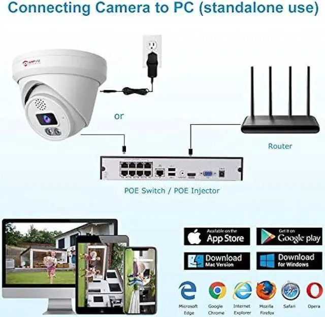 Support Micro SD Card MemoryUp to 256-GB Micro SD card memory (not included), you can buy 32/64/128/256 GB Micro SD. This POE camera is easier to install and connect. If you have any question, please