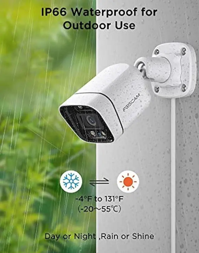 Color Night Vision & IP66 Weatherproof: Built to weather any storm and the darkest of nights, this 5MP POE Camera features a heavy-duty weatherproof IP66 housing as well as built-in 4pcs IR LEDs and a CMOS technology image sensor to achieve industry leading low-light performance and night-vision up to 66 feet.