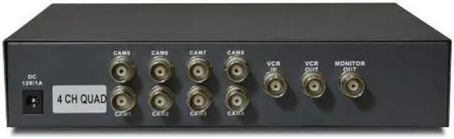 The 4Ch Video Color Quad Multiplexer allows several video signals from CCTV security cameras or other analog video devices to be combined and displayed on one monitor. The video processors are also commonly referred to as video mux, CCTV multiplexer, or color quad processor.