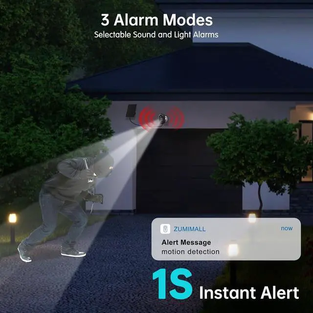 AI Detection & Customized 6 Detection Areas- Rapidly detect motion and receive instant alerts on your app with ZUMIMALL outdoor security camera. Wifi camera outdoor wireless benefit from AI detection capabilities that recognize people, pets, vehicles, and packages (subscription required). Customize up to 6 detection areas to reduce false alerts and improve accuracy. Activate the siren automatically or manually to deter intruders within 1 second, preventing crimes before they occur.