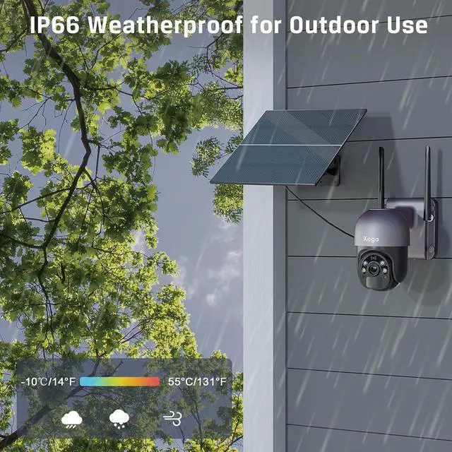 2K/3MP SUPER HD & COVER EVERY CORNERThe Xega Outdoor Camera Wireless Solar Powered captures each moment in 2K HD resolution, providing you with a sharp, clear footage for more visual details. The 4G LTE Security Camera Outdoor can turn its head 355°horizontally and 95° vertically, pan and tilt (Not supports automatic tracking of moving objects). You can remotely control the pan-tilt feature via the Ubox App, and always keep a watchful eye on your family or your business.