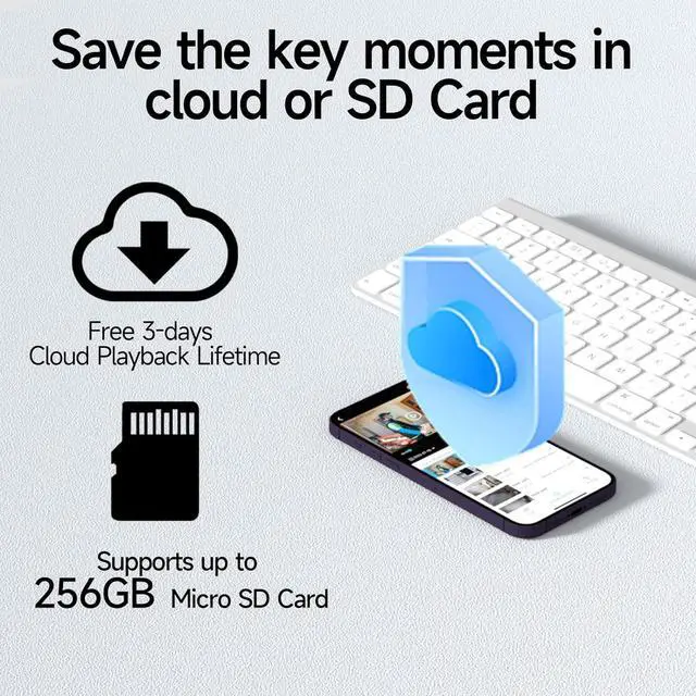 Local Stoage & AWS services protect your privacyInstall [O-KAM Pro] APP (IOS/Android) to set up the security camera. Free 3-day rolling cloud storage (No need any subscription, you can), The videos can be saved at micro SD card(NOT included, up to 256GB). If you have any questions with the camera, please find our customer service team on manual instruction.