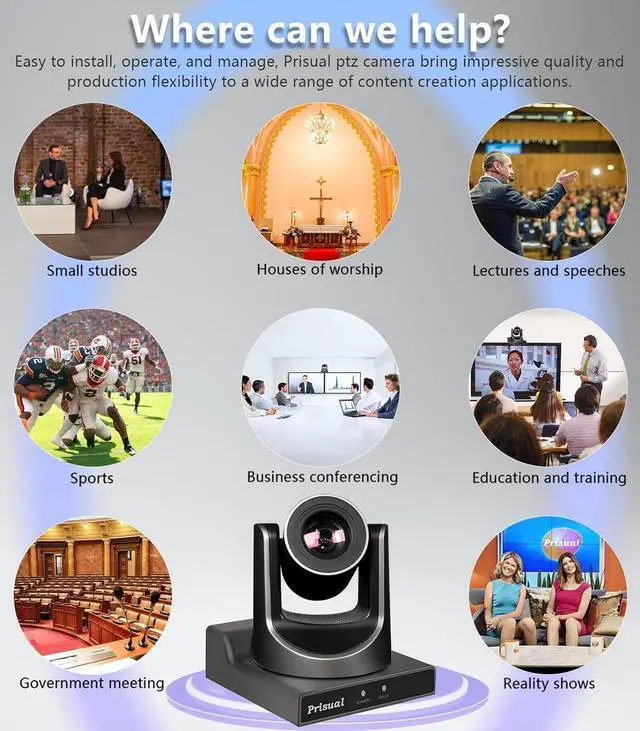 Full 1080P all video output up to 60fps, Progressive COMS sensor captures sharp and vivid color under different light conditions even in low light. Designed for even the smallest of spaces making it ideal for house of worship, classrooms, corporate training, Church live streaming and live productions and events.