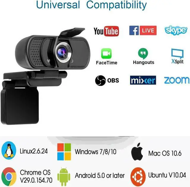 Versatile compatibility webcam, plug and play, easy to use and manual included in the box. stream webcam compatible with multi operations including windows 7, 8, 10, mac osx 10.7 and android 4.0 or higher version operation systems. work with pc, notebook, laptop, desktop, smart tv, android tv which has usb port. whats more, our pc full hd webcam also can work with skype, yahoo, msn, zoom, smart tv, android iptv, wechat, qq etc instant messaging applications.