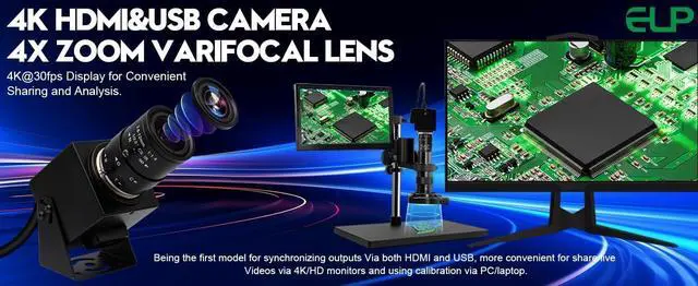 This ELP HDMI USB camera is full 4K resolution at 30 Hz, and has both USB and HDMI outputs and both can be used concurrently. USB plug to laptop, meantime HDMI connect to the monitor, two screen display simultaneously.