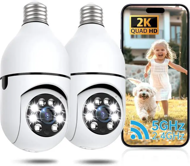 Dual-Band WiFi for Reliable Coverage (5G & 2.4G ): This light bulb camera combines 5G and 2.4G WiFi for stronger signals and wider coverage. Easy to install in any E27/E26 socket (110V-240V) or power outlet by included adapter, its perfect as a light bulb camera outdoor or indoor, ensuring seamless connectivity