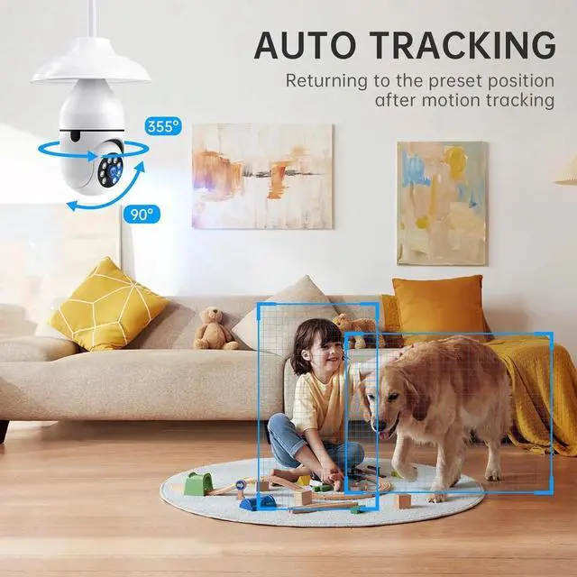 360° Panoramic View & Remote Control: Remotely control your light bulb camera for 355° pan and 90° tilt coverage. Use it as a pet camera or set automatic patrols to monitor your space effortlessly